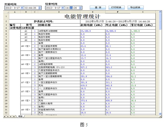 4.2報表功能:通過報表功能可以查詢任意時刻主要回路的全常規電參量數據、低壓回路的用電量、低di壓ya饋kui線xian回hui路lu的de漏lou電dian流liu值zhi和he配pei電dian線xian纜lan溫wen度du值zhi。用yong戶hu主zhu要yao關guan注zhu的de是shi用yong電dian量liang報bao表biao,用yong電dian量liang報bao表biao用yong於yu對dui租zu戶hu進jin行xing電dian費fei收shou費fei計ji量liang以yi及ji與yu供gong電dian局ju數shu據ju核he對dui後hou進jin行xing成cheng本ben核he算suan,如ru下xia圖tu4、5所示;