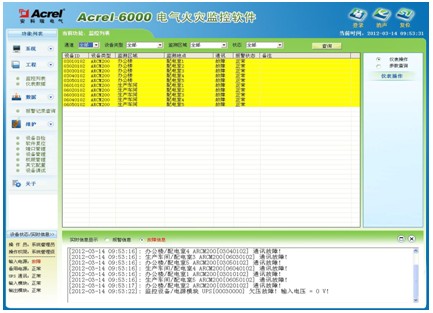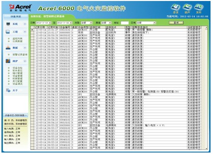 AcrelAcrel-6000 係列監控設備是整個電氣火災監控的最頂端,可連接多台 ARCM 係列探測器,組成一套功能齊全的電氣火災監控係統,具有聲光報警功能,並同步顯示報警回路,其報警信息可以保存 12 個月以上,後備不間斷電源可以保證市電失電後連續運行 4 小時以上,監控係統分為壁掛式、琴台式和櫃體式 3 種,有效通訊距離可達 1200 多米,多台設備之間或者設備和其他係統如報警與消防聯動係統、電力監控係統等可進行數據交換。並且該係列監控設備具備自檢功能,從硬件、軟件、通訊線路、電源各個方麵進行係統自檢,以隨時掌握係統產品運行狀態,保證係統運行的可靠性。