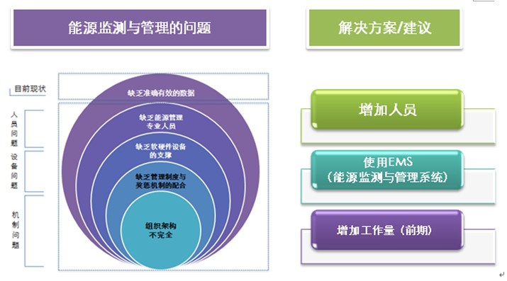 Ø 缺乏相應的能源監測與管理軟硬件設備的支撐。