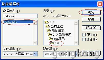 9 在第 6 步中選擇的數據庫文件所在目錄下,找到你要使用的數據庫 *.mdb 文件,然後選擇 “ 確定”