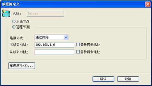 作為客戶端,必須建立一個數據源,以連接到服務器。假設服務器IP為192.168.1.6,建立數據源命名為“Server”: