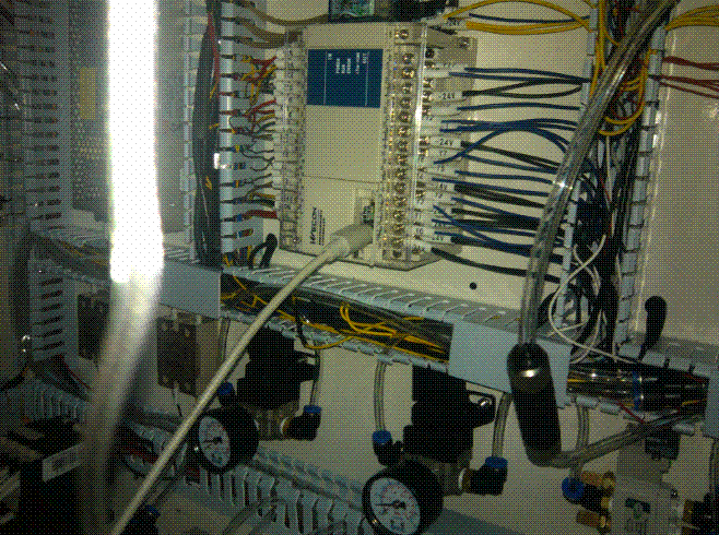 通過位於該設備右上角的維控人機界麵可以設定相關參數如壓接時間、卷膠間隔、卷膠長度等,顯示報警信息,設備另外兩種運行模式:手動模式、測試模式亦是在觸摸屏上麵操作。