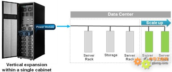 除chu了le數shu據ju中zhong心xin可ke用yong性xing之zhi外wai,模mo塊kuai化hua設she計ji也ye能neng夠gou解jie決jue為wei了le因yin應ying企qi業ye迅xun速su成cheng長chang所suo需xu具ju備bei的de高gao係xi統tong可ke擴kuo充chong能neng力li。透tou過guo采cai用yong模mo塊kuai化hua係xi統tong,如ru模mo塊kuai化huaUPS、PDC、PDUyijijijiahelanxianguanli,shujuzhongxinbuxuyaozaichuqikuodadianyuanrongliang,jikesuizheyewukuozhangmoshishunliwanchengshengji。jianlimokuaihuajiegouzhihou,biankejiangxianyoudeshujuzhongxinyouTIA-942可靠度等級的第1級或第2級(Tier 1 or 2)輕鬆升級至第4級。
