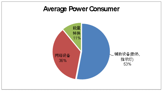 圖1. 僅有36%的能量消耗來自於網絡設備,如服務器、存儲設備以及網絡裝置,其中大部分的能量直接轉化為熱能,大約隻有2.4%的能量是有效輸出。如今,供應商所提供的基於ATCA架構的網絡設備都采用了提升能源效率的解決方案,可以大幅節約輔助設備及電源轉換過程中的能耗。