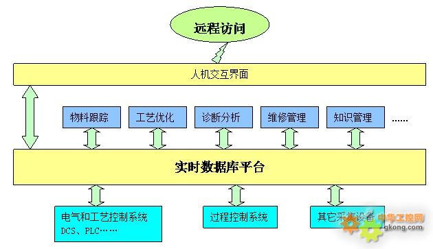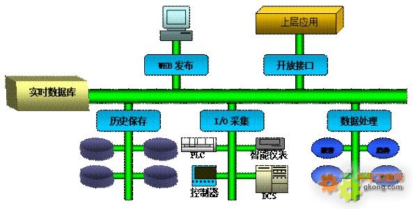 實時數據庫平台功能從結構上可分為三級:底層設備數據采集/管理、上層係統數據支持、人機交互數據訪問。