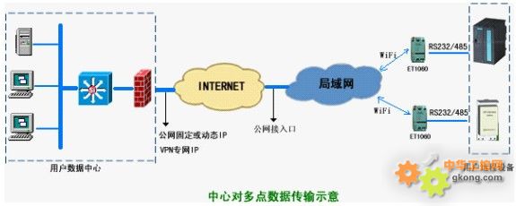 WiFi DTU是基於無線局域網絡進行數據傳輸的遠程數據傳輸單元,可在遠程設備(環保數采儀、電力RTU、自動化監控PLC、氣象綜合站、雨量計等等)同數據中心之間通過Internet,搭建數據橋梁,完成數據的雙向透明傳輸。同傳統的GPRS/CDMA DTU適合於安裝在多個監控點相對集中的區域內,由於區域內的所有終端共享一個公網接入口,在資費上用戶可以得到更大實惠。