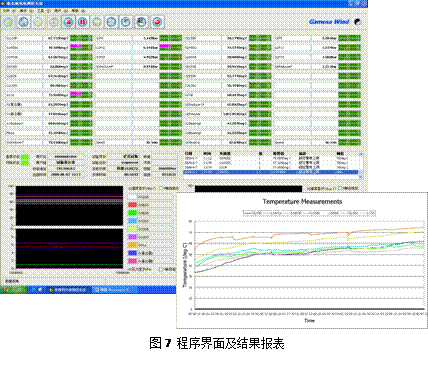 係統軟件可以適應多種試驗方法,具有配置靈活,功能強大,界麵美觀等特點。監控終端程序主界麵及報表如圖7所示。