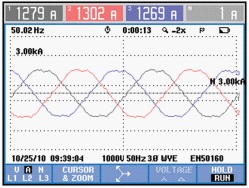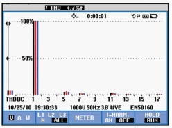 以下是ANAPF有源濾波器投入前後的現場對比數據: 1)三相電壓波形前後對比,見圖2、圖3。 2)三相電壓諧波含量前後對比,見圖4、圖5。 3)三相電流波形前後對比,見圖6、圖7。 4)三相電流諧波含量前後對比,見圖8、圖9