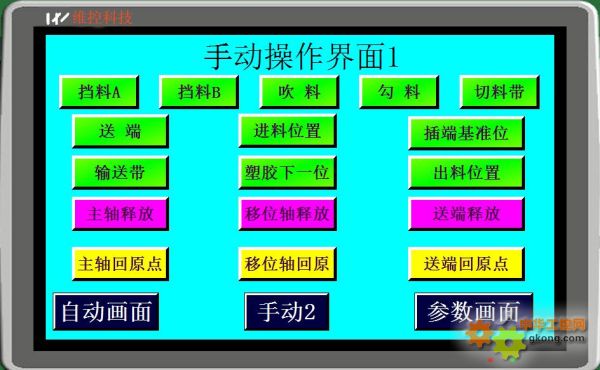 1、HMI部分,如圖1所示為手動操作畫麵,供用戶做調機用。