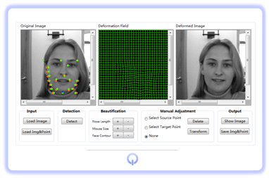 舉一個比較生動的例子:對(dui)於(yu)圖(tu)像(xiang)處(chu)理(li)算(suan)法(fa)的(de)教(jiao)學(xue),除(chu)了(le)一(yi)係(xi)列(lie)的(de)板(ban)書(shu)之(zhi)外(wai),有(you)沒(mei)有(you)其(qi)他(ta)既(ji)可(ke)保(bao)證(zheng)算(suan)法(fa)的(de)準(zhun)確(que),又(you)能(neng)保(bao)證(zheng)圖(tu)像(xiang)處(chu)理(li)直(zhi)觀(guan)生(sheng)動(dong)的(de)實(shi)現(xian)方(fang)式(shi)呢(ne)?答(da)案(an)是(shi):有的。為此,我們設計了一種應用程序,如圖4,它是一個人臉美容的程序(詳細使用,可在優酷網中搜索nextpad應用程序face)。通過這個程序,學生就可以印象非常深刻地理解到圖像處理算法到底能從事什麼樣的應用,從而讓學生真正地融入知識點的學習中。