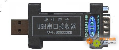 將USB232KB通過USB接到計算機、或者加USB-OTG線連接到平板電腦,無須供電,無需驅動。波仕USB232KB產品的RS-232/RS-485串口端是一個DB-9針座,RS-232引腳分配同計算機的RS-232口,但是隻有3-RXD和5-GND;RS-485的引腳分配為1-A、9-B、5-GND,但是隻接收不發送。RS-232/485的通信速率固定為(9600bps,N,8,1)。