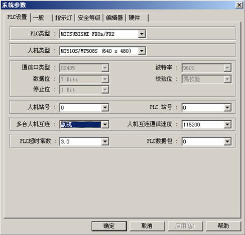 觸摸屏對每一台它所支持的PLC都可以支持【主機-副機】通信方式。所有的觸摸屏一台連著一台,而第一台和PLC連接。和PLC直接相連接的第一台觸摸屏必須【多台人機互連】設置為【主機】,所有其它的不跟PLC直接相連的應【多台人機互連】設置為【副機】,它們可以通過第一台觸摸屏來獲得PLC數據。理論上對連接的觸摸屏的數目是沒有限製的,但是連接的觸摸屏超過3台時,係統響應的速度可能會較慢。 在多台觸摸屏互連時,下載到主機和副機的工程程序其內容都是一樣的,都是在EB500組態軟件中設計好的,但是在下載時,下載到主機(即和PLC連接的第一台觸摸屏)的程序必須把【係統參數】中的【多台人機互連】設為【主機】,下載到其它觸摸屏的程序則應在此設為【副機】。 注意:所有的相連的觸摸屏必須設置為相同的速率,當觸摸屏被設置為【副機】時,觸摸屏將會忽略它和PLC 之間的通信參數(串口,波特率, ...),而始終使用PLC【RS-232】口來接收從第一台觸摸屏傳來的數據.如下所示: 關於多台人機互連的通信參數的設置請參看【係統參數】的【PLC設置】部分內容。 主機和PLC之間的連接方式和一般情況下的連接方式是一樣的,因此可以參照附錄I的連接方式來連接主機和PLC。而從機的連接方式有2種情況。 多台觸摸屏互連的方式有兩種,一種是PLC為RS-232方式,另一種為RS-485方式。其原理圖都是一樣的,如下圖所示: