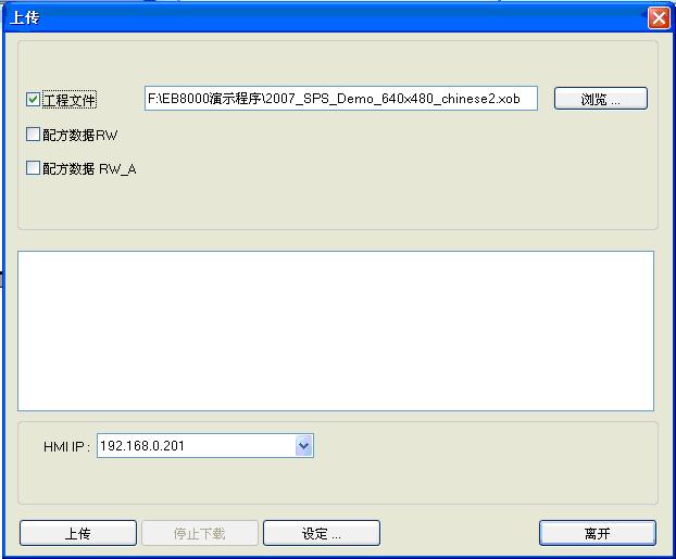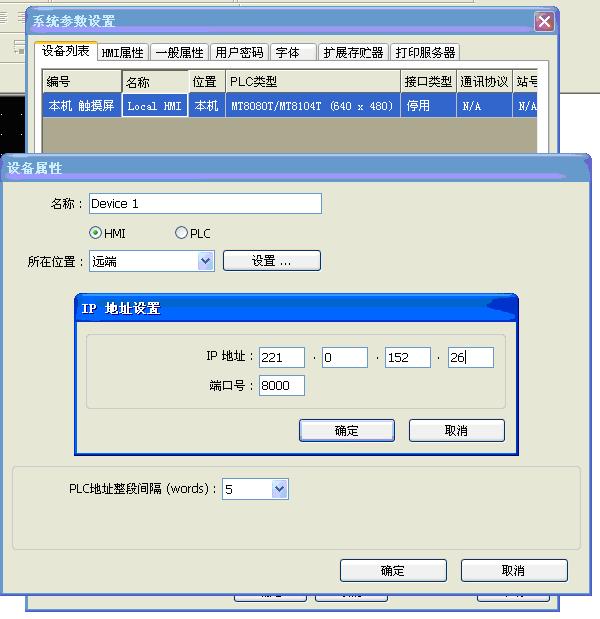 MT8000係列人機帶有以太網接口,通過Ethernet網絡,可以實現對遠程人機或者PLC數據的監控,同時也可以實現對遠程MT8000人機下載程序。 MT8000遠程監控係統的結構圖如下:  其中,MT8000人機上可以連接多種控製器。 實現MT8000的遠程監控功能,首先要對被訪問的MT8000人機所在的局域網的路由器進行設置,方法如下: 1.MT8000的IP設置 觸摸機器的右下角,會在機器底部出現一條工具欄,左麵有4個圖標,如圖示  點擊第四個“System Setting”圖標,輸入密碼後(默認密碼111111),出現如下圖所示對話窗口: 在“Netword”一欄中,設定機器的IP地址,完成後保存確定即可。建議設定後重啟一下機器再下載程序。 同時,在EB8000軟件中,設置MT8000的端口號,如下圖所示,可以設為8000.  2.路由器的設置 通過設置路由器,將8000端口號映射到MT8000人機的IP地址上。以TP-LINK路由器為例介紹設置: 在IE地址欄中輸入IP:192.168.1.1,彈出窗口如下圖所示:  輸入路由器對應的用戶名和密碼後,進入路由器的設置界麵,將虛擬服務器設置成如下圖所示,即將端口8000映射到MT8000的IP地址,同時將下載的20248端口也映射到MT8000的IP地址。  路由器設置完成後,保存退出就可以了。 同時,也要注意查看一下外網的IP,此時IP為:221.0.152.26。 3.MT8000遠程監控 打開EB8000軟件,新建一個程序,此程序即用來模擬監控遠程人機的數據。係統參數設置如下:  添加完遠程MT8000人機的設備清單如下圖所示:  然後,在EB8000的編輯界麵中,設置2個元件: 位狀態切換開關,設置如下圖所示:  注意:PLC名稱處,選擇的是遠端人機對應的名稱。 再放置一個數值輸入元件,如下圖所示:  注意:PLC名稱處同樣要選擇遠端人機對應的名稱。 設置完成後,既可保存編譯程序,執行離線模擬或者在線模擬,當切換LB0的狀態時,遠端MT8000人機上的LB0的狀態會對應的改變;當在電腦上對LW0輸入一個數值時,在遠端的MT8000人機上的LW0地址會顯示電腦上輸入的數值。相反地,也可以在電腦上查看遠端MT8000人機上的數據變化。 至此,即實現了MT8000的遠程監控功能。 4.MT8000遠程下載和上傳 在遠端MT8000人機所在局域網的路由器已經設置好的基礎上,即可開始遠程下載和上傳操作了。 在電腦上打開EB8000軟件,在“Project Manager”窗口上,點擊“下載”按鈕,出現如下圖所示對話框,  [Firmware]一般第一次下載時會選中 [工程文件]要下載到遠端MT8000 人機中的XOB文件所在路徑 [配方數據RW]如果有此配方文件,需要選中 [配方數據RW_A]如果有此配方文件,需要選中 [資料取樣記錄]如果有此資料取樣記錄文件,需要選中 [HMI IP]此處填寫遠端MT8000 人機的IP地址,為:221.0.152.26 [下載完成後自動重啟觸摸屏]如果此項被勾選,程序下載完成後會重啟觸摸屏 [清除配方數據]如果此項被勾選,下載程序前會將機器中的所有配方數據清除為0 [清除事件記錄]如果此項被勾選,下載程序前會將機器中的所有事件記錄文件event log清除 [清除資料取樣記錄]如果此項被勾選,下載程序前會先清除機器上存在的所有Data log文件 設置完成後,點擊“開始下載”,出現提示程序下載進度的對話框,當最後顯示“完成”時,即程序已下載完畢。 也可以在EB8000軟件的編輯界麵中,點擊 執行下載,設置窗口如下所示:  無論哪種路徑下載,下載進度的提示信息都是相同的。 如果是遠程上傳,則在EB8000的“Easy Manager”窗口上點擊“上傳”按鈕,出現下圖所示的對話框:  [工程文件]選擇好將上傳的XOB文件保存在電腦的哪個路徑下麵 [HMI IP]即遠端MT8000人機所在局域網的外網IP,此處為:221.0.152.26 設置好,點擊“上傳”按鈕,程序開始上傳。