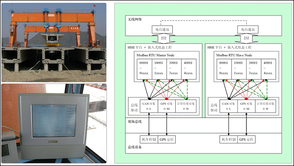 基於HMI平台的雙提梁機車控製和實時位姿調節係統中,通過HMITECH TPC,係統完成雙提梁機車GPS定位信息的互傳,並通過HMI平台的CAN通訊端口,協調控製機車,實現雙提梁機的速度同步、位置同步和工作同步。如圖3.3.1所示: