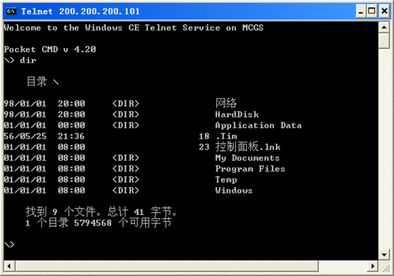 我們通過dir命令可以加以驗證,我們現在是否是在察看TPC中的文件: