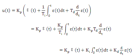 PID控製即比例控製、積分控製、微分控製的組合,綜合了3種控製器的優點。在實際運用中,有時也不需要用到全部的3個部分,隻有比例控製單元是必不可少的。對於PID控製器,輸出為: