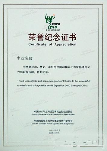 11月17日,為表彰中控集團為2010年上海世博會所作出的積極貢獻,上海世博會事務協調局活動部領導專程來杭,向中控集團頒發世博會“榮譽紀念證書”;同時,向為世博會機器人項目作出重要貢獻的中控集團常務副總裁鍾國慶、中控研究院機器人事業部總經理鄭洪波等6人頒發了世博會個人“榮譽紀念證書”。鍾國慶代表中控集團接受了證書。