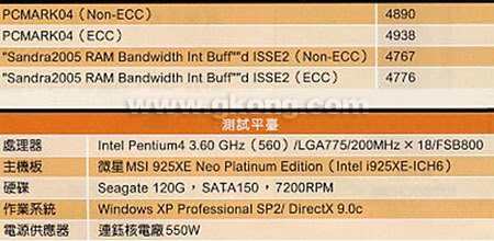 測出來的結果非常出乎大家的意料,怎開了ECC反而分數還比較高?而且這還是測了好幾次的結果!優力勤UNIGEN DDR2 533 512MB功能強大,想來建議售價也不低,但“資料無價!”,確實值得建構服務器/工控的廠家投資。