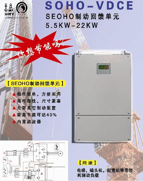 收獲(SEOHO)電氣繼高端AFE產品推出之後,適應低端市場需求,特別開發了此旁路回饋產品,此產品專為小型低成本節能改造而研發,取代常規製動單元及製動電阻、同變頻器結合使用、將製動能量回饋電網。常見應用負載有:高層樓宇電梯;油田磕頭機;離心機;小型風力發電;小型起重機等。