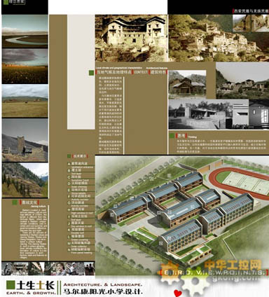 至於獲得馬爾康地區一等獎的868號作品,評委認為宿舍區、教學區和運動區布置合理,與馬爾康地區寒冷的氣候相適應;擋風坡地的設計,使得建築能夠躲避冬季冷風,並形成了獨特的沿街景觀;采用了南向直接受益窗、厚重的結構牆體、北向走廊緩衝空間等被動式手段;建築形體的設計能夠在冬季得到良好的太陽輻射量,而在夏季室不會使室內變得過熱;采用太陽能煙囪來加強自然通風;采用太陽能集熱器為地板輻射采暖提供熱能。