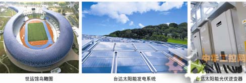 另外台達還打造了世運場館令人歎為觀止的百萬瓦太陽能發電量的太陽能屋頂。這座太陽能發電係統,共計使用8844片自行研發製造的太陽能模塊以及效率高達98%的太陽能轉換器,所產生的電源可以滿足比賽場地所需的大部分電量。