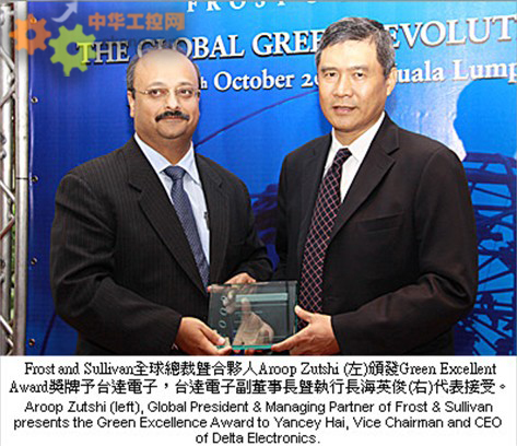編者語:第一屆“2009 Frost & Sullivan Green Excellence Award”頒獎典禮在馬來西亞吉隆坡舉行。台達電子集團因多年持續致力於開發環保節能產品、創新技術與善盡企業社會責任等傑出表現得到了各界高度肯定,榮獲此卓越環保獎企業領導項的殊榮.