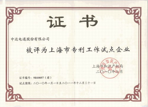 繼成為“上海市專利培育企業”後不久,中達電通又經浦東新區知識產權局初審和推薦、上海市知識產權局審核,榮幸的成為“上海市專利工作試點企業”!