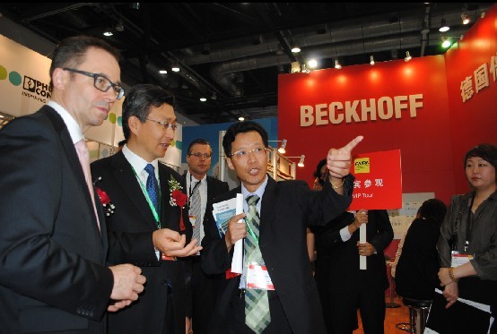 【2011年5月18日,北京】2011年5月18日—20日,2011國際現代工廠/過(guo)程(cheng)自(zi)動(dong)化(hua)技(ji)術(shu)與(yu)裝(zhuang)備(bei)展(zhan)覽(lan)會(hui)在(zai)北(bei)京(jing)國(guo)家(jia)會(hui)議(yi)中(zhong)心(xin)隆(long)重(zhong)舉(ju)行(xing)。中(zhong)華(hua)人(ren)民(min)共(gong)和(he)國(guo)工(gong)信(xin)部(bu)裝(zhuang)備(bei)工(gong)業(ye)司(si)第(di)一(yi)副(fu)司(si)長(chang)李(li)東(dong)等(deng)領(ling)導(dao)親(qin)臨(lin)會(hui)場(chang),出(chu)席(xi)此(ci)次(ci)展(zhan)會(hui)的(de)開(kai)幕(mu)典(dian)禮(li),並(bing)參(can)觀(guan)了(le)德(de)國(guo)倍(bei)福(fu)自(zi)動(dong)化(hua)有(you)限(xian)公(gong)司(si)(Beckhoff)設在E1館的展台。倍福中國區董事總經理梁力強先生為他們詳細介紹了新近推出的“科學自動化”這一全新理念。