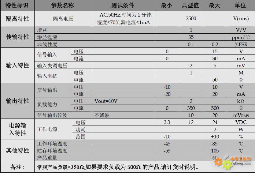 隔離放大器產品電氣性: