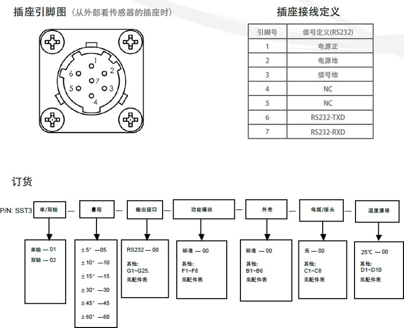 | 量程 | ±5° | ±10° | ±15° | ±30° | ±45° | ±60° | |