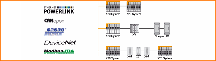 比如:在山東的一個造紙項目中,主控係統采用采用西門子S7-400 控製器,通過X20BC0063總線控製器,PROFIBUS-DP擴展X20I/O模塊。在同一DP地址下,通過X20BR9300和X20BT9100通訊模塊進一步擴展63個分布式工作I/O站點,所有X20I/O支持帶電熱插拔。