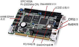 * 板貼低功耗Stpc VEGA200MHz CPU * 板貼64MB SDRAM內存 * 支持CRT/LCD(單色/微彩/真彩)顯示 * Rtl8139C以太網卡 * DiskOnChip & CompactFlash存儲 * 適用於數控機床、火花機