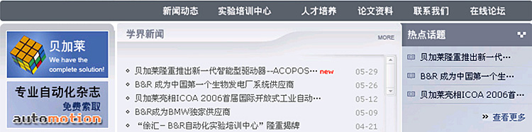 貝加萊學界聯盟網站由以下幾部分組成:新聞動態、實驗培訓中心、人才培養、論文資料和在線論壇。