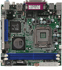 MB877 MINI_ITX主機板 Mini ITX (170mm X 170mm) ATI RS400 Chipset, 400/533/800MHz FSB Supports IntelR PentiumR 4, up to 3.8GHz Built-in VGA, ATi M10 graphic core , support CRT, TV-out PCI Express Gigabit LAN controller Two DDR2 sockets support up to 2GB