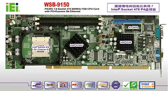 威達電集團是提供解決方案最快速的工業計算機供貨商,下屬公司芯發威達電子(上海)有限公司近日強勢推出了PICMG V1.0規格、支持Socket 478 Pentium® 4處理器的WSB-9150長卡。WSB-9150是威強繼其廣受好評的ROCKY-4786 CPU卡之後所推出的加強版產品。WSB-9150可以搭配Intel? Pentium? 4 /Celeron? D處理器,使用Intel? 915GV/ICH6芯片組,在支持SATA接口之類最新連結接口時提供更多彈性以及更好的效能。其中包括: