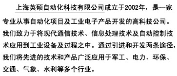 公司名稱:上海英碩自動化科技有限公司 電話:64411698 / 方立新 傳真: